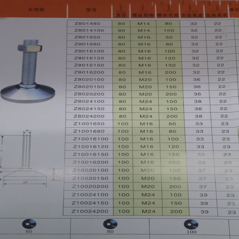 2.產(chǎn)品尺寸:可根據(jù)圖片相應(yīng)選擇(產(chǎn)品底座除常規(guī)尺寸外,均需開模定制,所有螺桿長度均可定制)